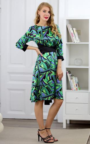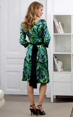 Elegantné A-čkové šaty s lodičkovým výstrihom a 3/4 rukávmi. Šaty sa zapínajú na zips vzadu na chrbte. Opasok je všitý v bočných švíkoch, čo vytvára krásny efekt, keď sa uviaže. Šaty nie sú podšité. Všetky použité materiály boli pred zhotovením predprané.