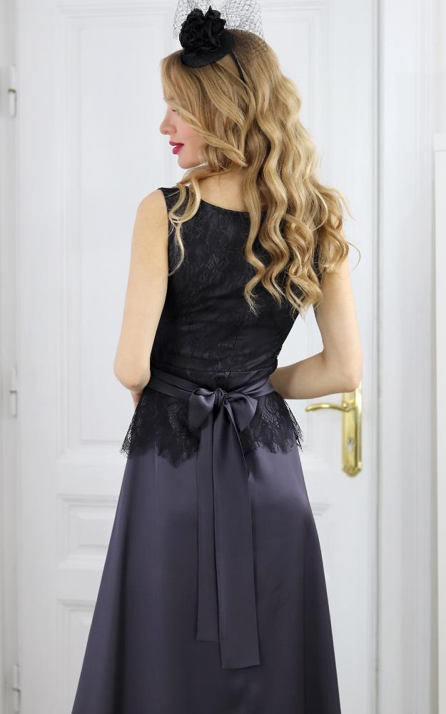 Doplnky: k šatám bola použitý fascinátor "Brigitte" v čiernej farbe. Fascinátor nie je zahrnutý v cene šiat.