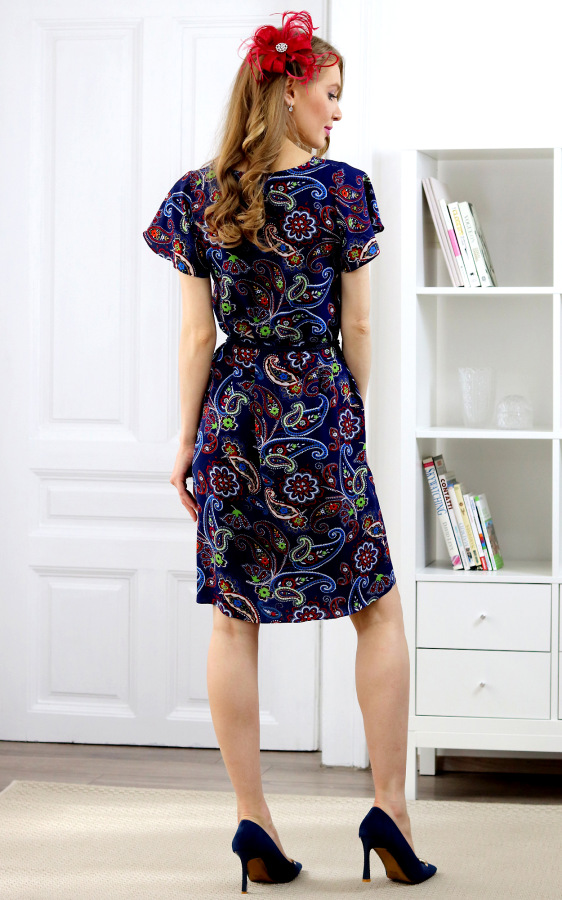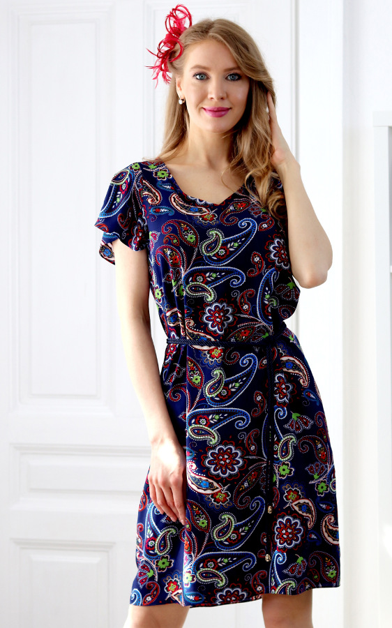 Ellie - viskózové šaty orientálnym vzorom na tmavo modrom podklade