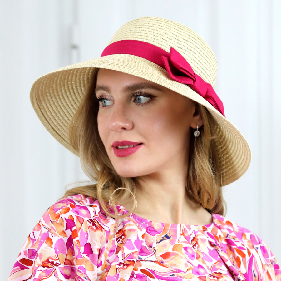 Materiály: klobúk - papierová slama, mašľa - 100% bavlna.