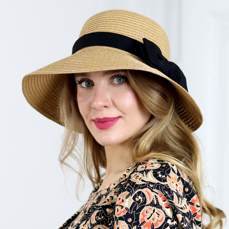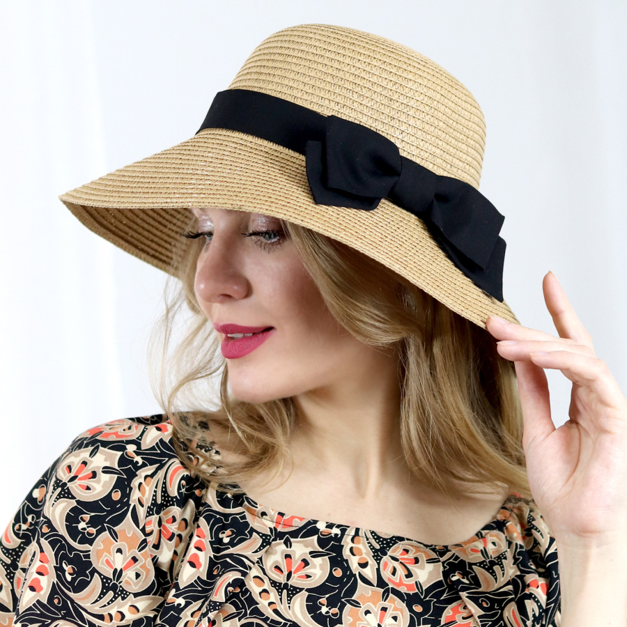 Materiály: klobúk - papierová slama, mašľa - 100% bavlna.