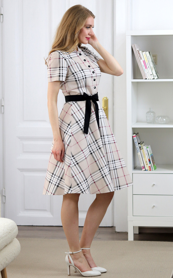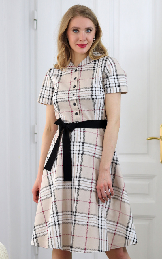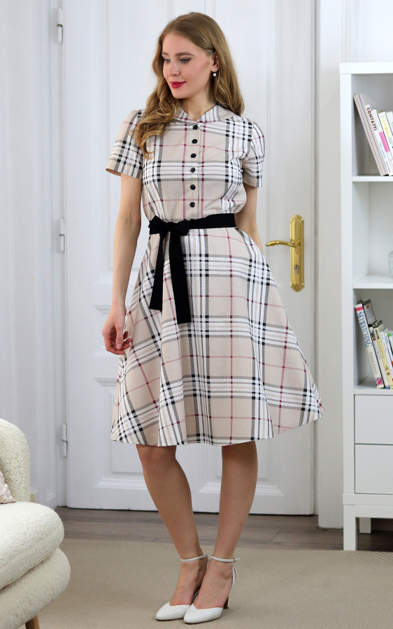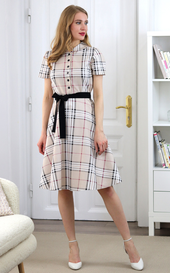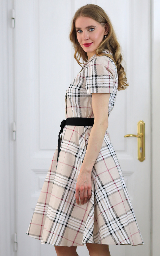 Francis - béžové kárované košeľové šaty