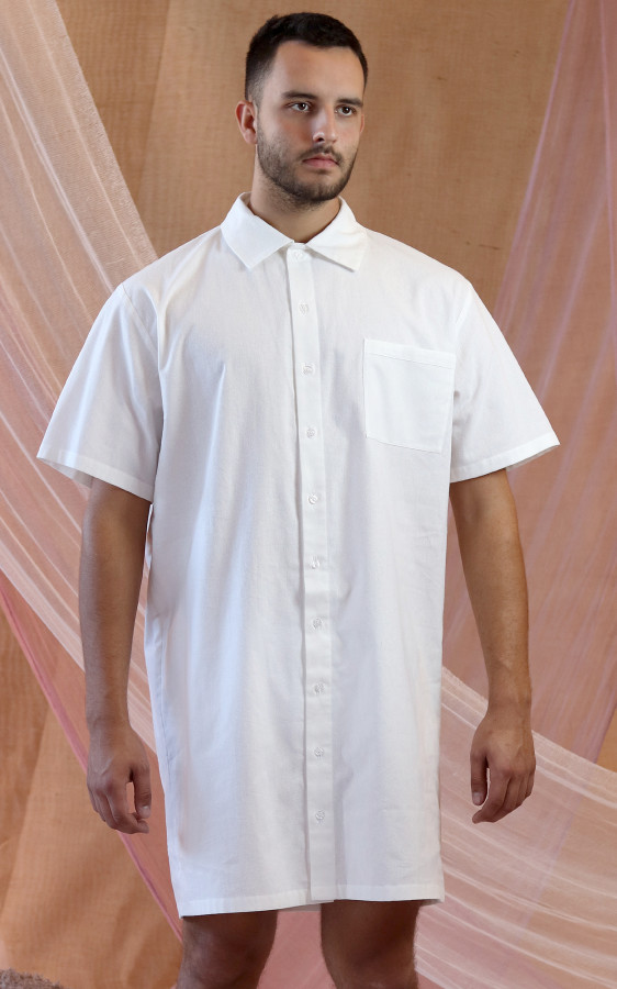 Frank - biela unisexová flanelová nočná košeľa z bio bavlny, veľkosť L