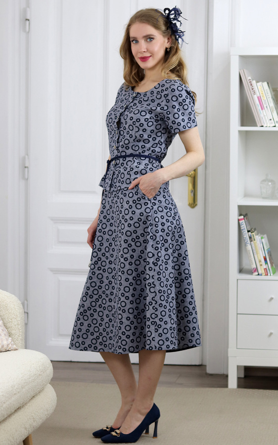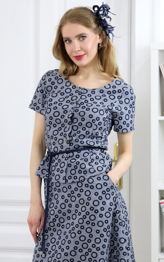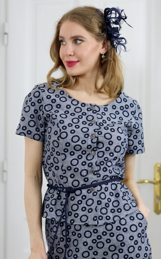 Jackie - princesový top z tmavo modrého ľanu s bavlnou