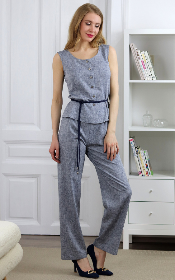 Maxine - tmavo modré nohavice z ľanovej zmesi